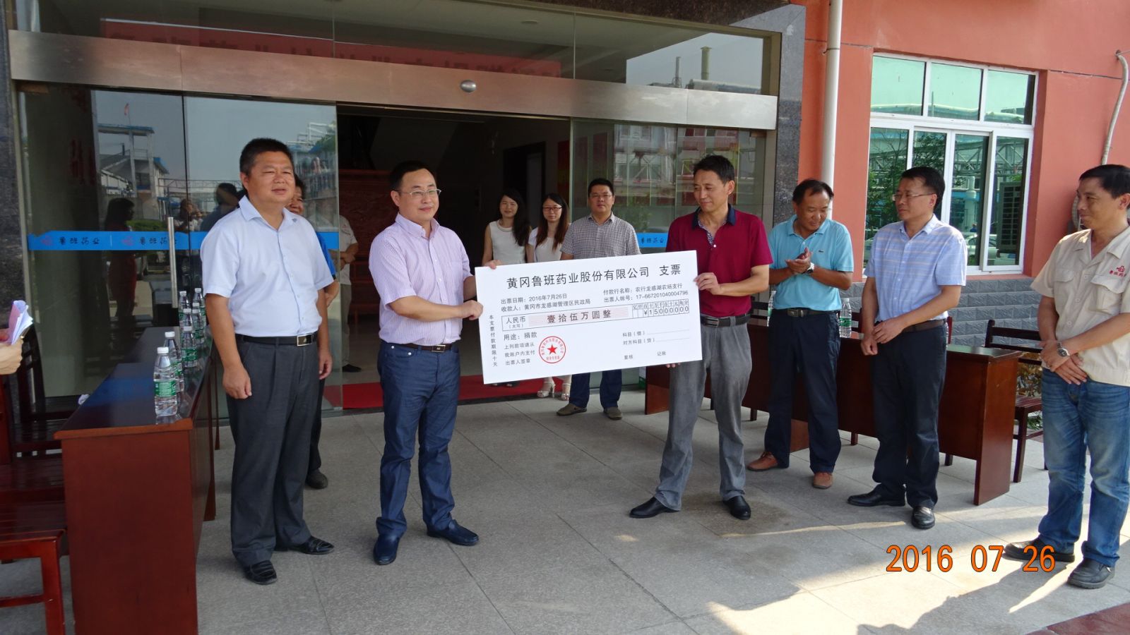 2016年7月,公司向管理區(qū)受災群眾捐贈救災款15萬元整。